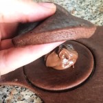 Sortez la préparation du frigo et étalez la pâte à épaisseur d’environ 8 mm. Découpez la pâte avec un emporte-pièce rond de 7 cm de diamètre et placez en son centre une abondante cuillère à café de Nutella. Recouvrez avec un deuxième disque de pâte et pressez bien les bords. Prenez un emporte-pièce de 5-6 cm et découpez le biscuit comme montré sur les photos ci-dessous. Répétez l’opération avec le reste de la pâte et disposez les biscuits ainsi formés sur une plaque de cuisson garnie de papier sulfurisé.