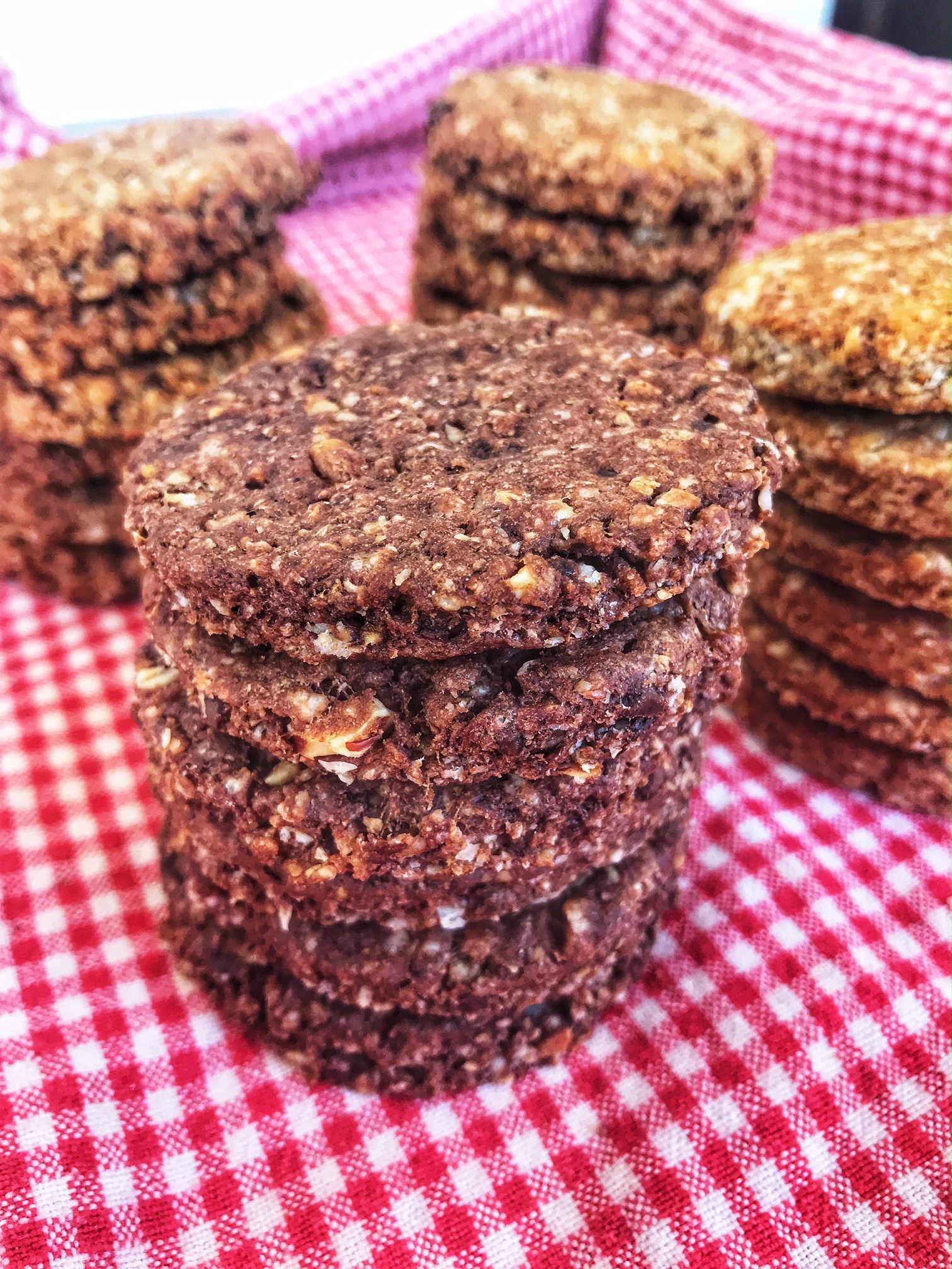 Biscuits aux céréales de 4 sortes (nature, au chocolat, croustillants et aux fruits)