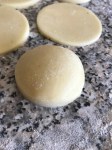 Sortez la pâte sablée du frigo et étalez-la à épaisseur d’environ 6 mm. Découpez la pâte avec un emporte-pièce rond de 7 cm de diamètre et placez en son centre une abondante cuillère à café de garniture aux pommes. Badigeonnez avec un peu d’eau le pourtour du rond. Recouvrez avec un deuxième disque de pâte et pressez bien les bords. Prenez un emporte-pièce de 5-6 cm et découpez le biscuit comme montré sur les photos ci-dessous.