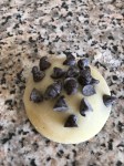 Répétez l’opération avec le reste de la pâte et disposez les biscuits ainsi formés sur une plaque de cuisson garnie de papier sulfurisé. Saupoudrez la surface des biscuits de pépites de chocolat et appliquez une légère pression pour qu’ils y adhèrent.