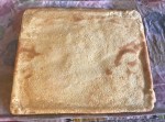 Versez le mélange sur la plaque précédemment préparée sur un cm d’épaisseur (en rectangle) et faites cuire pendant environ 10 minutes, jusqu’à ce que la surface du biscuit soit légèrement dorée. Selon votre four, cela pourrait prendre quelques minutes de plus.