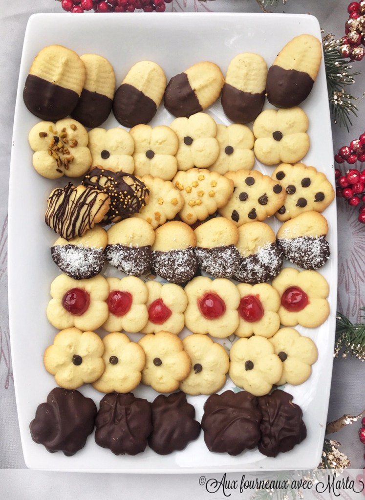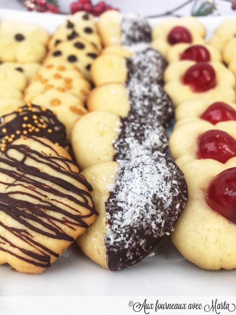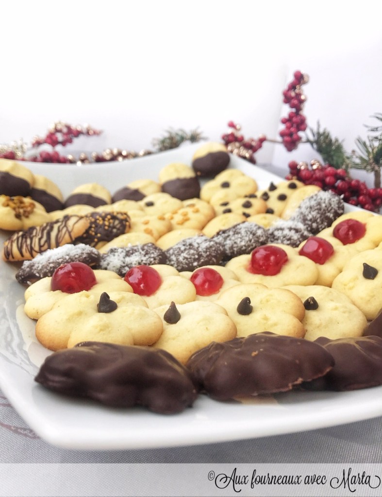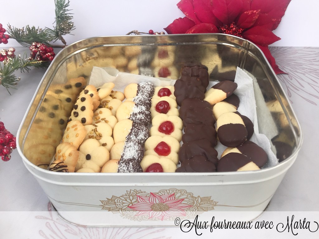 La presse à biscuits soit on l’adore soit on la déteste. Mais sachez que si vous la détestez c’est tout simplement parce que vous n’avez pas encore trouvé LA bonne recette. J’ai une presse biscuits depuis 2 ans, on me l’a offerte à Noël et je me souviens l’avoir tout de suite essayée, ce fut un échec total: une pâte qui collait partout, gluante et qui ne donnait absolument pas les résultats espérés. Je l’ai donc longtemps laissée au placard, jusqu’à ce que je me decide à ressayer. Et cette fois-ci c’est le coup de foudre! Une recette tout simplement parfaite, d’une simplicité étonnante avec des biscuits qui sortent de la presse biscuits sans aucun problème et qui gardent la forme à la cuisson. Les dresser est un jeu d’enfant, tant que mes enfants se sont amusé à presser les sablés et à varier les disques pour avoir des jolies formes. La pâte que je vous propose est très versatile, vous pouvez varier les arômes, les formes, la décoration… Vous ne la quitterez plus et vous pourrez enfin utiliser à plusieurs reprise votre presse biscuits oublié. En plus, c’est une idée fantastique pour un petit cadeau de Noël fait maison: ces sablés se gardent pendant plusieurs jours. Et si vous vous posez la question: promis la version cacaoté ne tardera pas à apparaitre dans le blog!