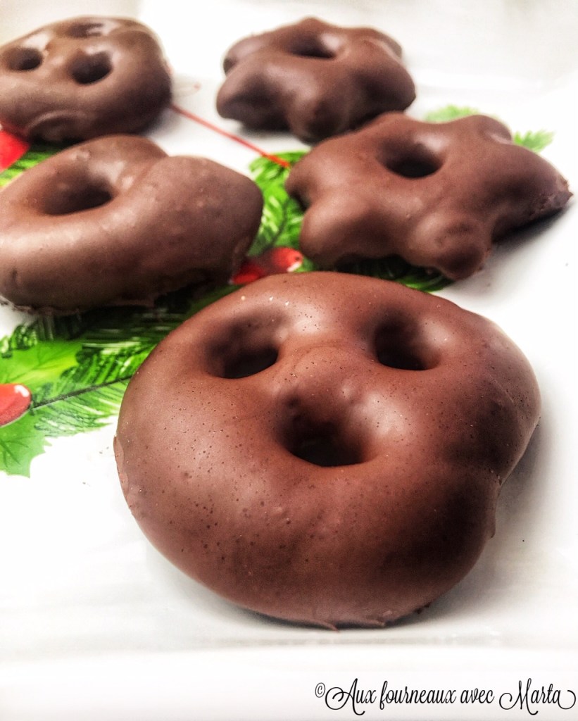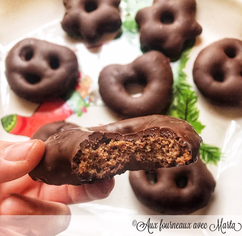 Quand en 2006-2007 j’ai passé un an à Strasbourg pendant mes études, j’ai pu goûter aux nombreux délices de la région. Avec les bredele et le Kougelhopf traditionnel que j’adore, une place spéciale dans mon coeur est occupée par les petits pains d’épices enrobés de chocolat. La recette des Lebkuchen est à la base allemande et moi j’aime la version avec le glaçage au chocolat, mais vous pouvez également les manger nature ou recouverts d’un glaçage au sucre glace. J’ai saisi l’occasion pour en préparer cette année après avoir trouvé un moule parfait pour ces petits gâteaux (celui-ci). Je suis très contente du résultat: des pains d’épices moelleux et délicieux, qui amènent une air de fête et de marché de Noël dans la maison. À offrir et à s’offrir sans modération!