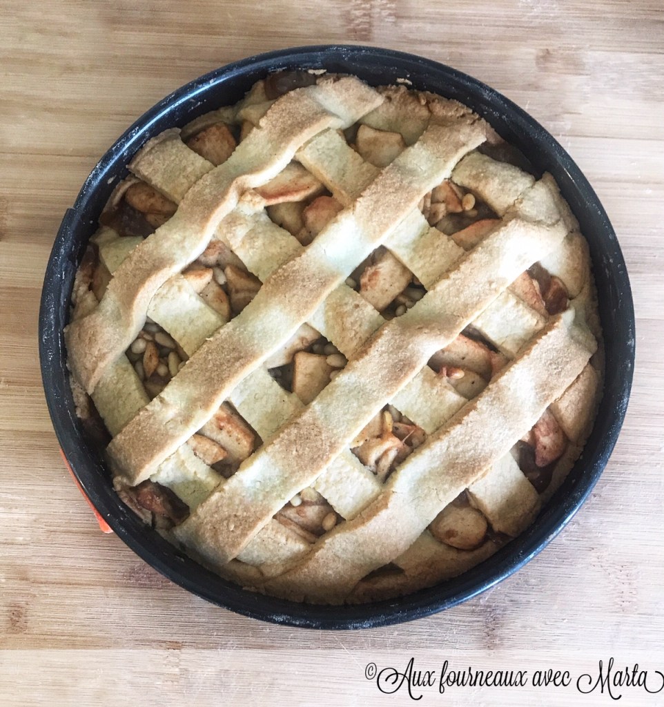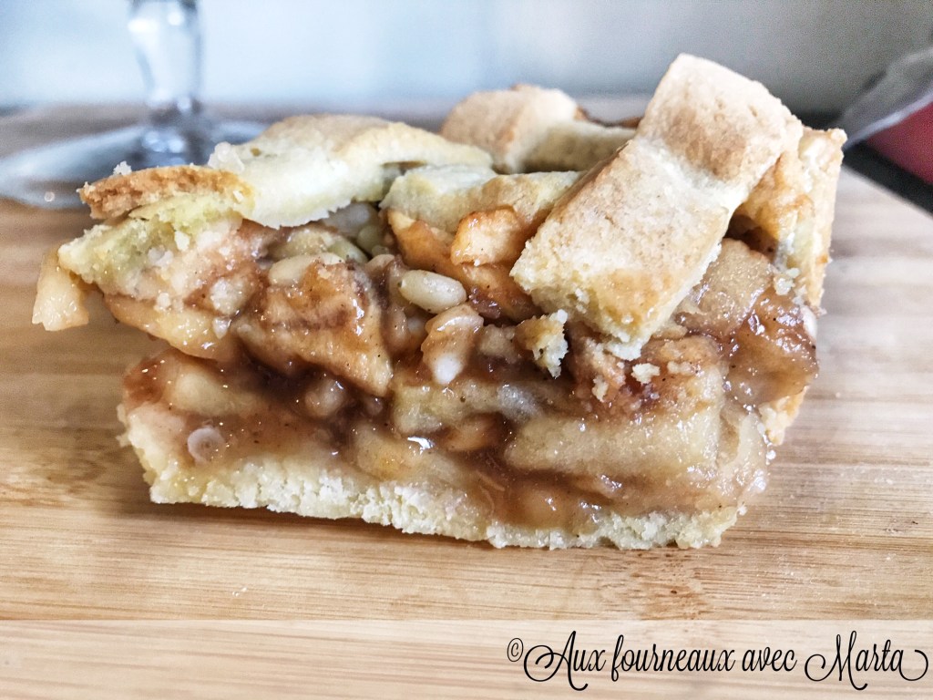J’aime beaucoup tester de nouvelles recettes, surtout si elles sont typiques d’autres pays. La tarte très parfumée que je vous propose aujourd’hui vient des Pays Bas, elle est à base de pâte sablée, pommes, pignons de pain et épices. Ce que j’ai aimé de ce gâteau c’est la richesse de la garniture qui est très épaisse, avec les pommes fondantes en bouche et une petite note épicée. Dans la garniture vous pouvez ajouter des pignons de pins et des raisins secs mais ce n’est pas obligatoire. Parfaite accompagnée d’un bon jus de pomme et une boule de glace à la vanille, cette tarte authentique saura vous apporter un peu de réconfort dans cette période si compliquée. Recette testée et approuvée par ma voisine néerlandaise!