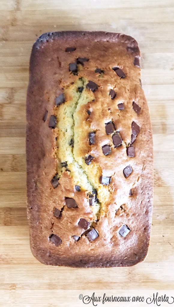 Versez la pâte dans le moule à cake et parsemez la surface avec le chocolat en morceaux. Cuisez pendant environ 55-60 minutes. Laissez refroidir complètement avant de démouler et de servir.