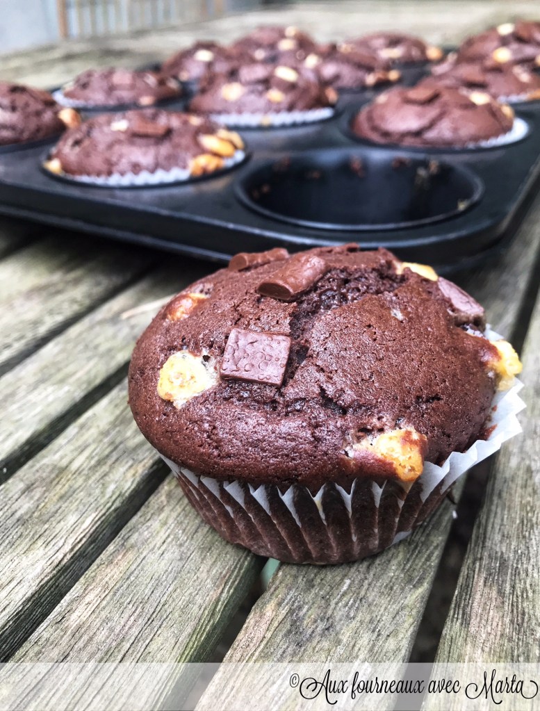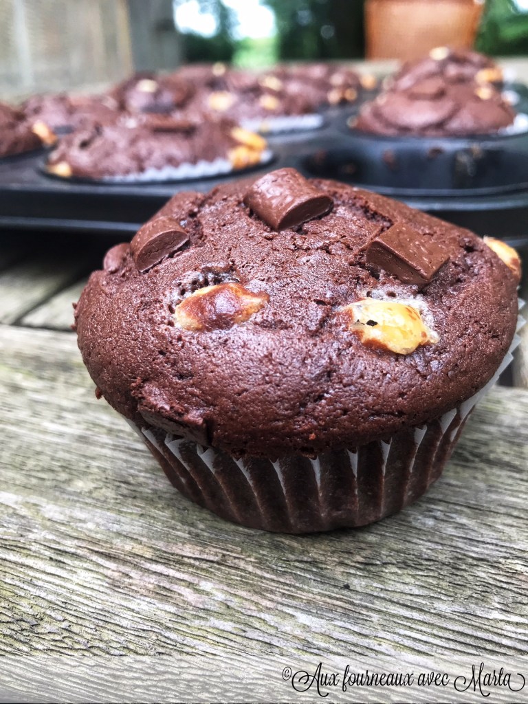 Pour m’excuser de mon absence je partage avec vous une recette infaillible que je fais très souvent. Dernièrement j’ai eu très peu de temps pour moi et l’envie de cuisiner des nouvelles recettes parfois me manque. Mais ces muffins sont incontournables, je pense les avoir préparés au moins 5 fois ce mois ci: pour une vente de gâteaux à l’école, pour le petit-déjeuner, pour des gouters avec les amis… leur préparation est très rapide et simple et le résultat se sont des petits gâteaux très moelleux et chocolatés.