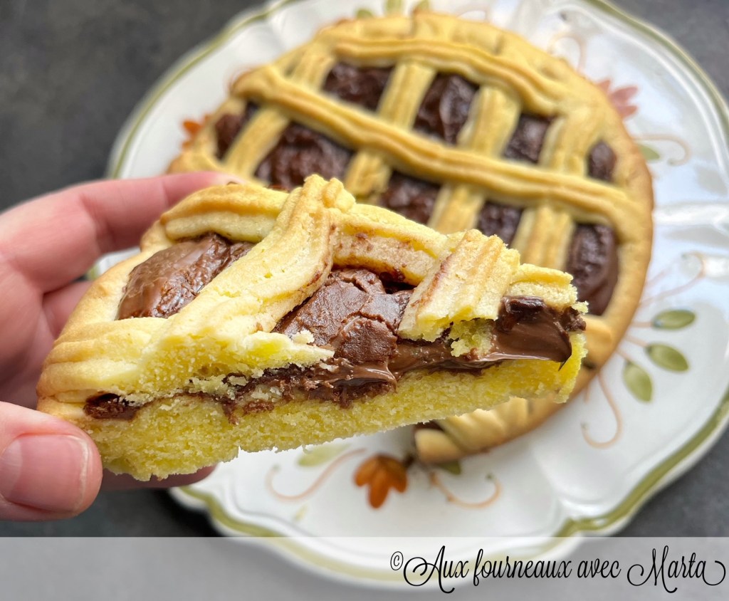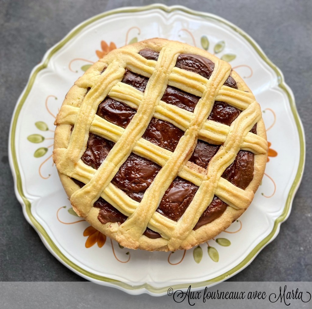 Mettez le mélange dans un sac à poche muni d’une douille cannelée assez large, puis déposez la pâte sur le fond du moule, en dessinant des cercles concentriques. Versez la garniture de votre choix sur le fond de la tarte (en évitant toutefois les bords) et puis dessinez avec le sac à poche une grille de pâte sablée par dessus.