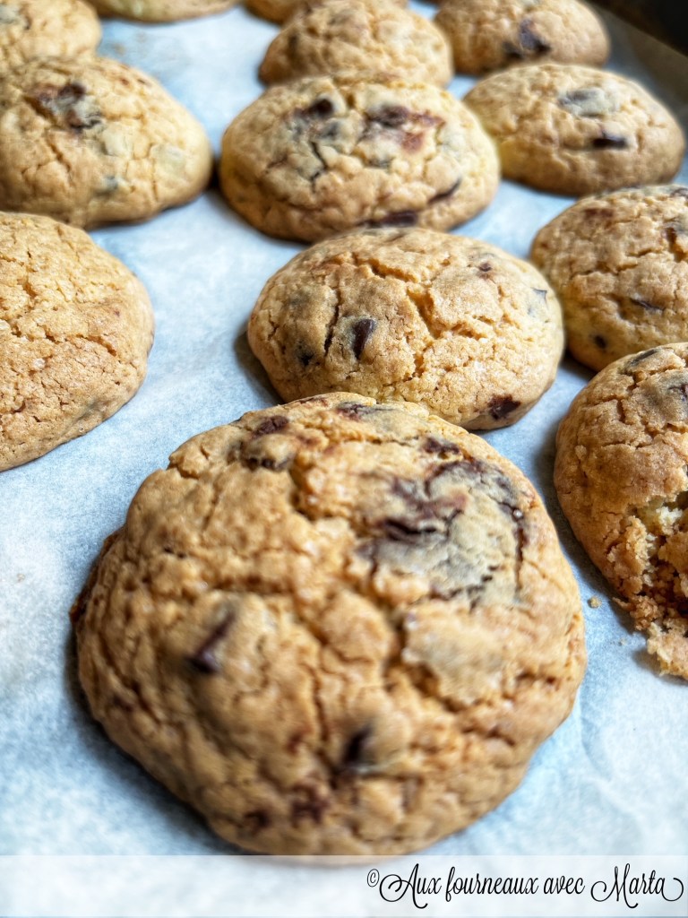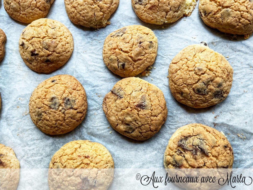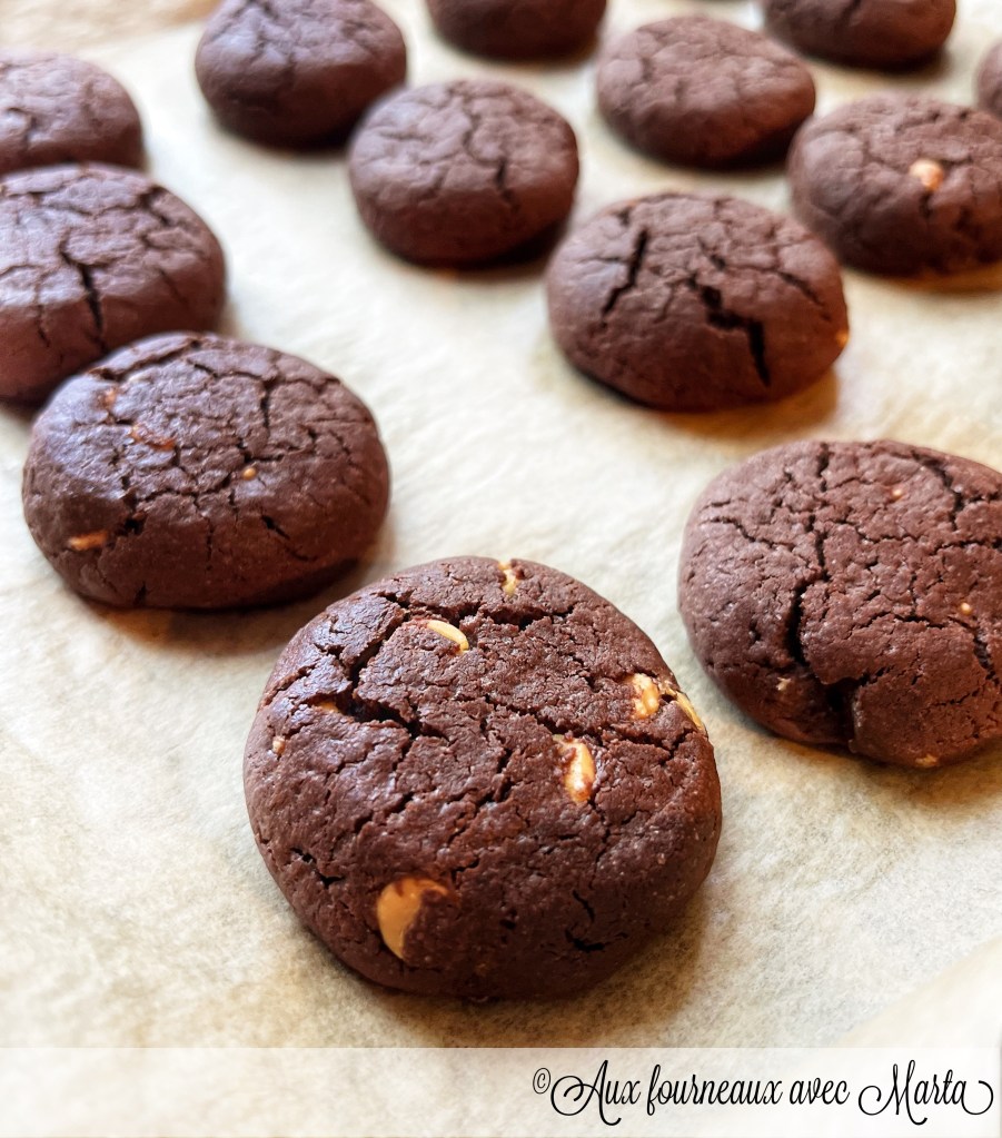 Disposez les cookies ainsi formés sur la plaque préparée en les espaçant d’au moins 2 cm puis aplatissez-les légèrement à l’aide du dos d’une cuillère et faites cuire pendant 20-22 minutes. Laissez refroidir complètement avant de décoller les biscuits.
