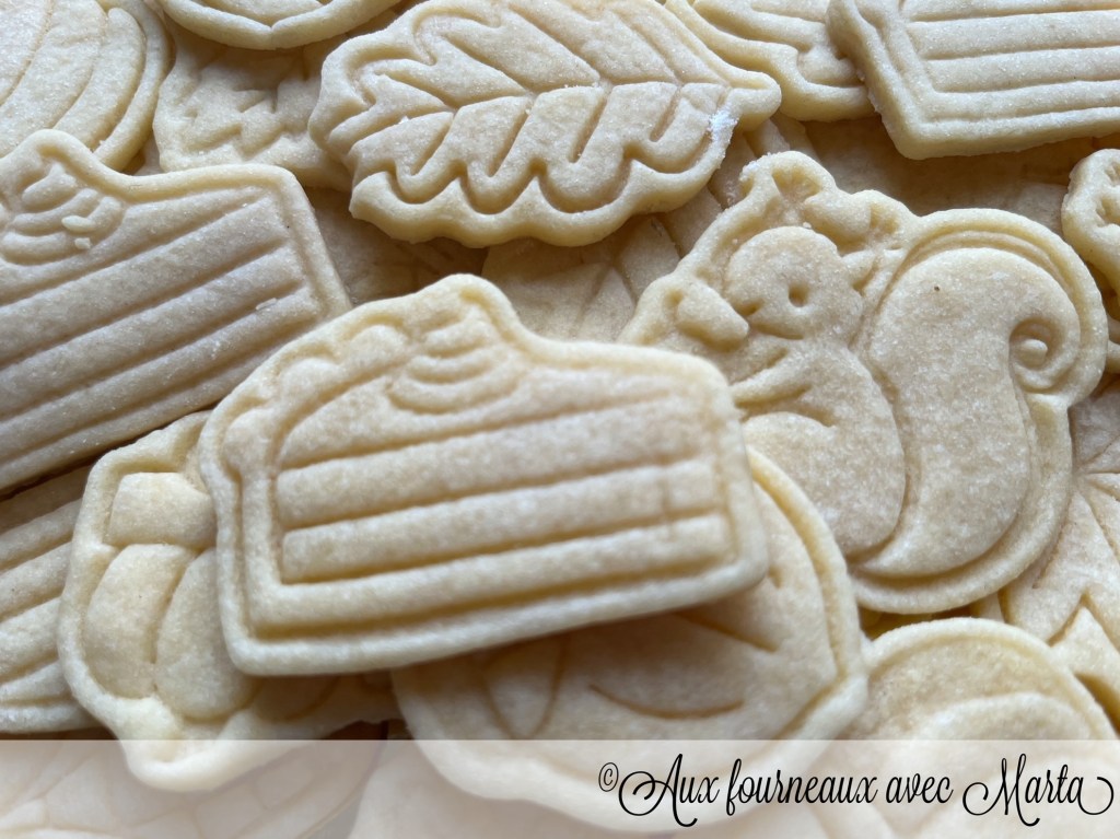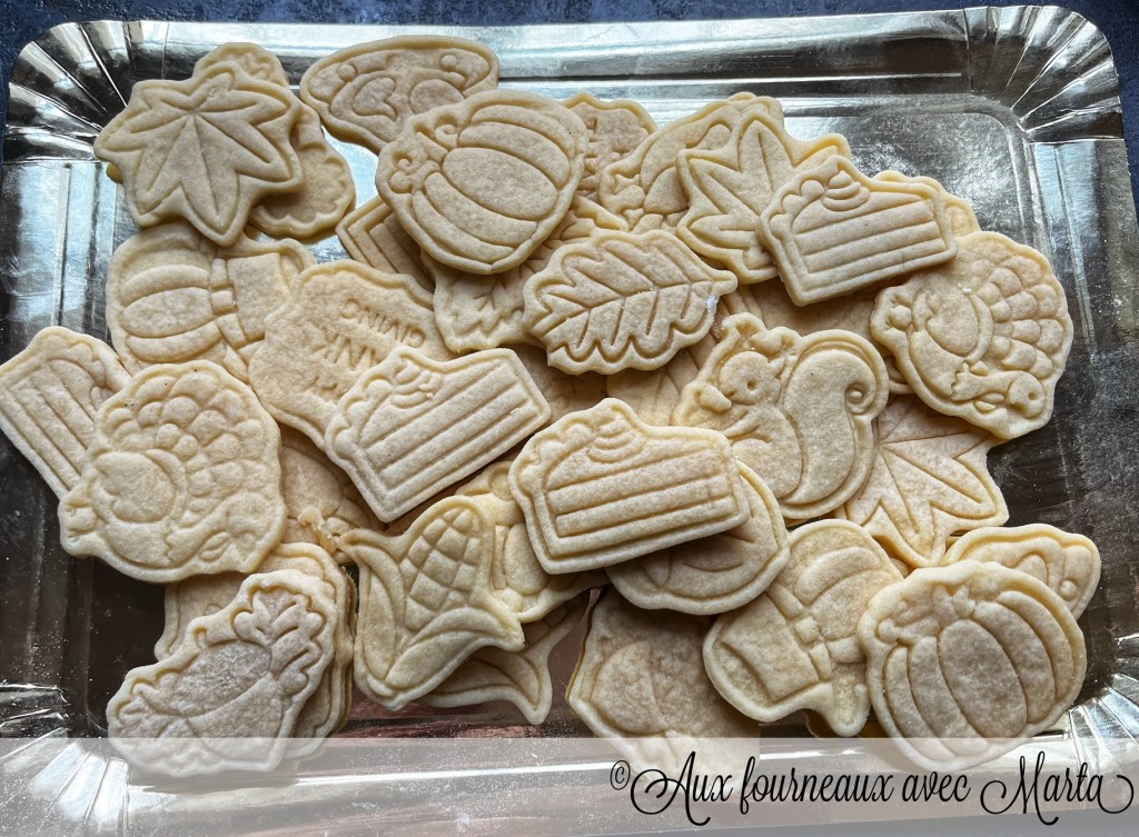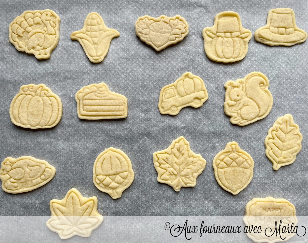 Comme je vous ai déjà dit précédemment, j’organise tous les ans une fête chez moi avec mes voisins pour la Thanksgiving. Cette année pour l’occasion j’ai acheté des emporte-pièces sur ce thème sur Amazon. Il me fallait donc une recette de sablés qui tiennent parfaitement leur forme pendant la cuisson. Je ne voulais pas preparer une pâte sablée classique mais trouver un biscuit qui sort du commun. Les sugar cookies (biscuits au sucre) ont toutes ces caractéristiques: faciles à faire, ils tiennent parfaitement leur forme lors de leur passage au four et ils sont incroyablement bons. Après cuisson, ils doivent rester pâles et ne pas dorer, sinon ils deviendraient trop secs. Vous pouvez les servir nature ou les décorer avec du glaçage royal.