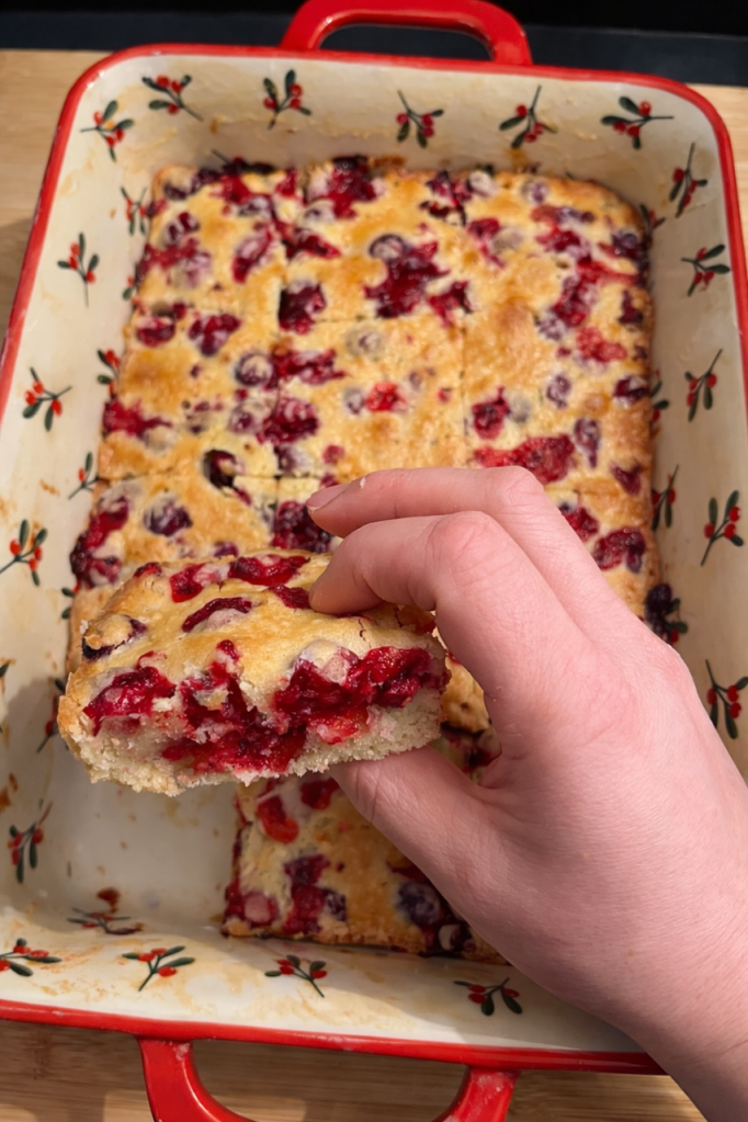 Si vous cherchez un gâteau à la fois moelleux, légèrement acidulé et parfait pour toutes les occasions, ce cranberry cake est fait pour vous ! Les canneberges fraîches apportent une touche fruitée qui se marie à merveille avec la douceur d’une pâte riche en beurre et en vanille. Facile à préparer, ce gâteau se coupe en petites portions idéales pour un goûter, une fête ou simplement pour se faire plaisir avec un bon café ou un thé.
